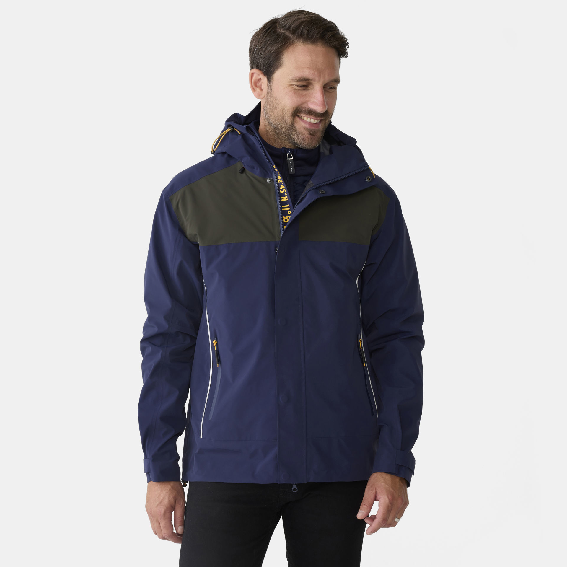 3-Layer Performance Shell Jacket – the essence of performance and comfort and design. Crafted to withstand the elements, it's both waterproof and windproof, ensuring you stay protected in any weather condition.Ultimate flexibility and comfort with the 4-way stretch fabric, allowing you to move freely. It also offers a soft, luxurious feel on the surface, giving you a rich and comfortable wearing experience. Remarkably lightweight at under 500 grams.The Volvo headquarters coordinates is featured on the inside of the collar and the Swedish flag in the side seems celebrates Volvos heritage. This jacket is made from recycled nylon, sourced from pre-consumer and industry textile waste, making it a more conscious choice. This jacket is PFAS-free and treated with a Bionic finish for added durability.Safety is paramount, and that's why we've added reflective piping on the front and back for enhanced visibility.Our model is 191 cm tall and wears size L.
