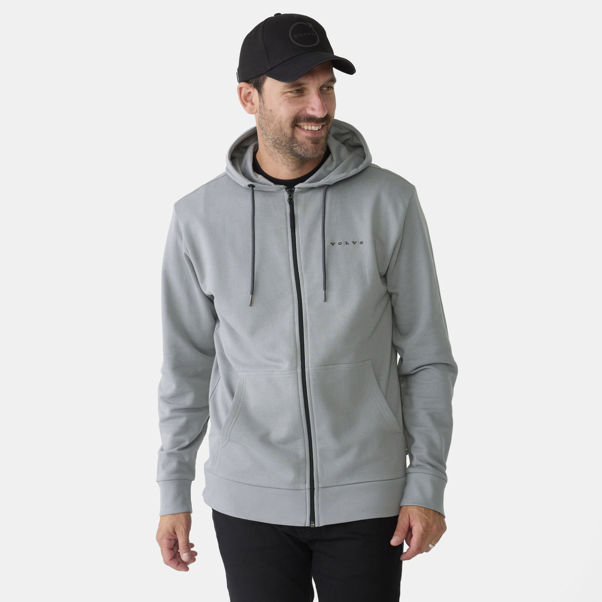 Volvo Grey Iron Mark Hoodie – GOTS CertifiedStay warm in style with this sustainably made hoodie, crafted from GOTS-certified organic cotton. Designed with signature Volvo details, it’s the perfect blend of comfort and Scandinavian heritage.This versatile grey hoodie combines sustainable materials with bold Volvo branding—ideal for everyday wear, relaxing at home, or on the go.Our model is 191 cm tall and wears a size L.