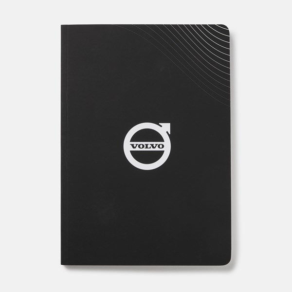 This is a book yet to be written (by you) except for one page, giving you the Volvo brand story. The notebook holds 48 lined sheets with a cover in matt black featuring the graphic wave-pattern accompanied by the iron mark logo. The inside cover features a graphic world map pattern front and the Volvo lead words “Quality, Safety, Environmental Care” on the back. The notebook is not only well designed; it is also well produced using FCS certified paper to spare nature resources